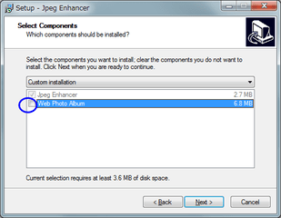 ↓図では、「Web Photo Album」というソフトも、インストールする設定になっています。