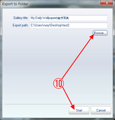⑨ 「Export to folder」を選んで、「Start」をクリック。
