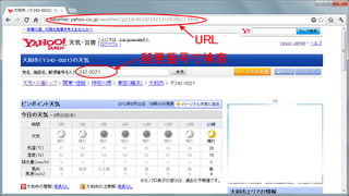 Yahoo!天気予報サイトで、検索欄に、自宅の郵便番号を入れれば、