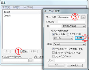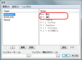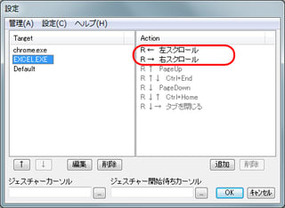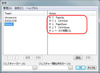 あとは、「Default」のときと同じように、マウスジェスチャーを登録していきます。
