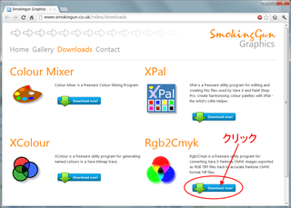 「SmokingGun Graphics」というサイトで、↓の「Download now !」ボタンをクリック。