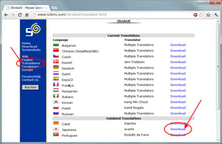 サイトの、左側メニューで「Translations」を選び、