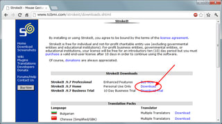 「StrokeIt」ダウンロード・ページを開いて、