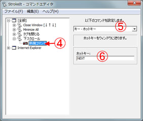 ⑥「ホットキー」欄をクリックして、該当するキー(ここでは「PageDown」キー)を押します。