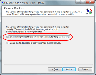 途中、↓の画面が出たら、「I am installing ~ for personal use.」を選びます。