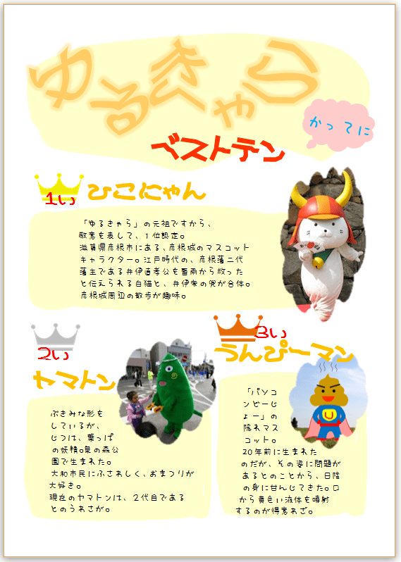 ゆるキャラらしい文書を、作ってみました。
