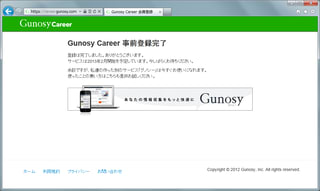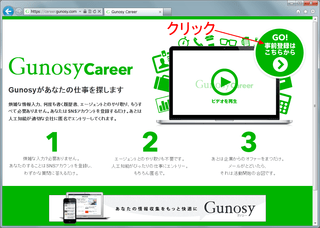 「グノシー・キャリア」サイトを開いて、「GO! 事前登録はこちらから」ボタンをクリック。