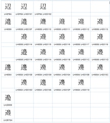 ↓のように、「辺」の異体字がちゃんと表示されれば、OK。