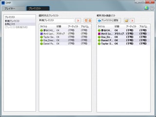 「プレイリスト」タブで、曲順などを整理して、プレイリストを作れます。