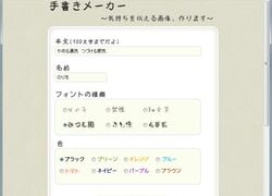 パソコン 相田みつを風の手書き画像 相田みつを風など、 手書きフォント画像を、つくってくれるサービス 「手書きメーカー」 「手書きフリーフォントを使えばいい」と思ってしまいますが、 「みつを風」というフリーフォントは、見つけられませんでした。 このサービスなら、画像としてです... 2012.12.28 パソコン