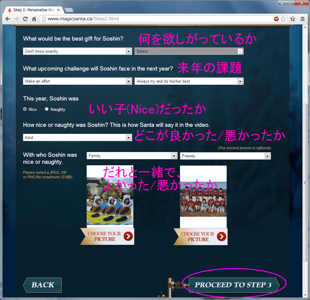 写真は、写真を拡大縮小・移動して位置合わせし、「UPLOAD」。