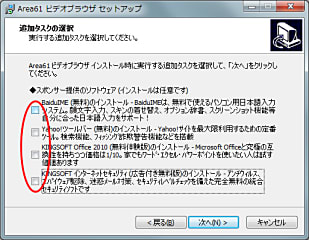 途中、スポンサーのソフトをインストールするか、聞いてきます。