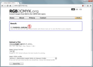 画像ファイルを、CMYKモード(印刷物用)に変換してくれるサイト。