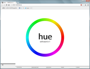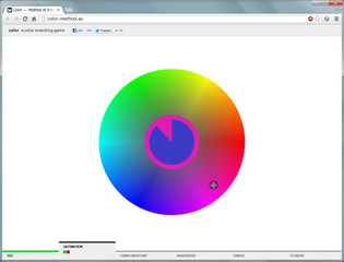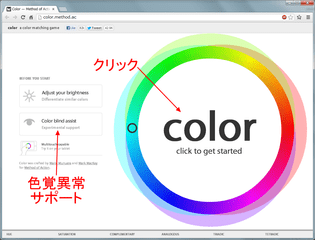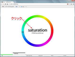 外側の色相環の、どこがパックマンと同じ色か判断して、クリック。