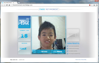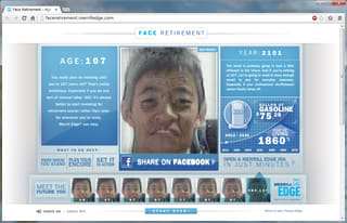 「Face Retirement」を開いて、「MEET THE FUTURE YOU !」ボタンをクリック。