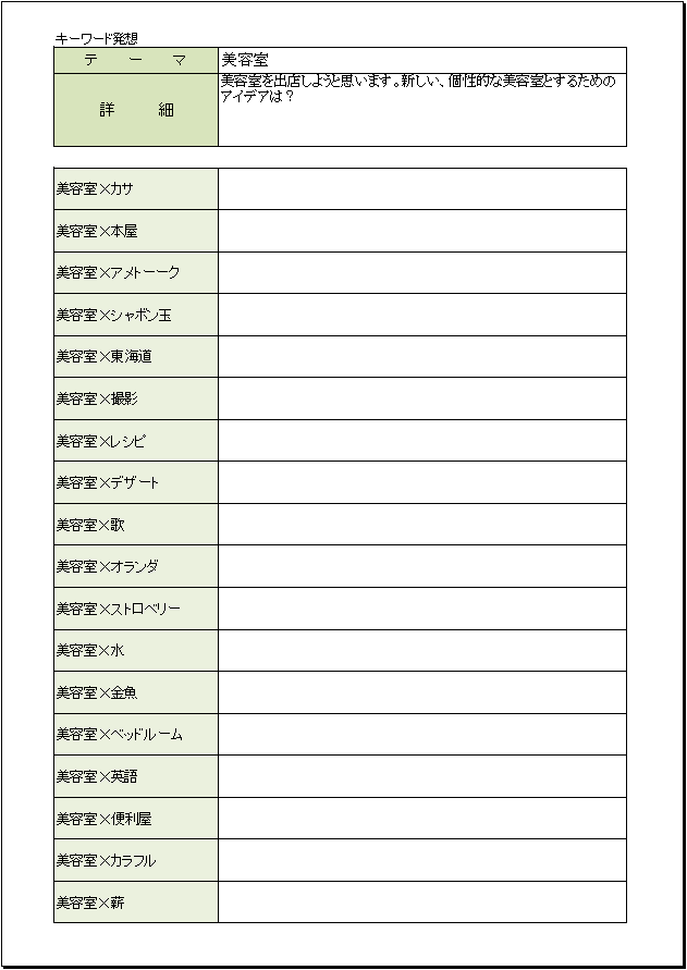 そこで、「キーワードで発想する」という方法を、作ってみました。