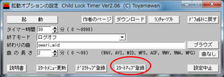 まず、上記「設定パネル」で、「スタートアップ登録」ボタンをクリック。