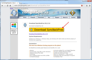 SyncBackFreeのダウンロードページを開き、ダウンロードボタンをクリック。