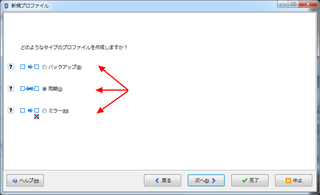 バックアップ・同期・ミラーリング、いずれにするか選びます。
