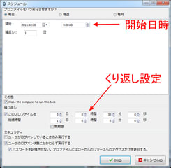 上部で、開始基準となる日時を設定し(過去でもOK)、