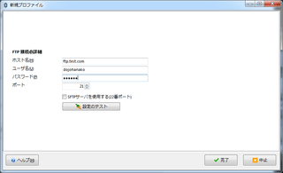 FTP側も同様に、FTPサーバー上のフォルダを指定。