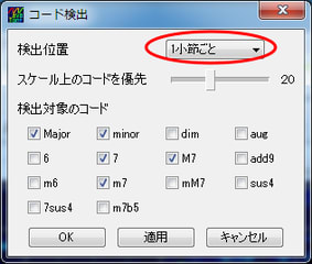 「検出位置」を、曲に合わせて、「半小節ごと」「1小節ごと」いずれか選びます。