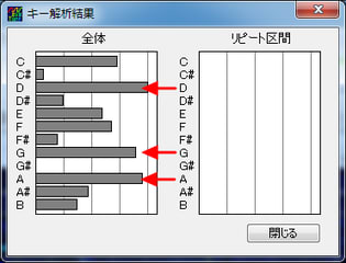 「解析」メニュー→「キー解析」でも、わかります。