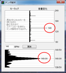 「解析」メニュー→「テンポ解析」を見ると、テンポ(BPM)がわかります。