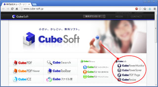 「CubeSoft」サイトを開き、右側「CubeLab」のいずれかをクリック。