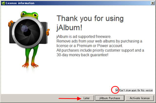 「Upload」で、jAlbumギャラリーや自分のサイトへアップできます。