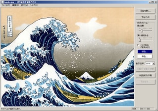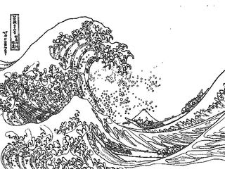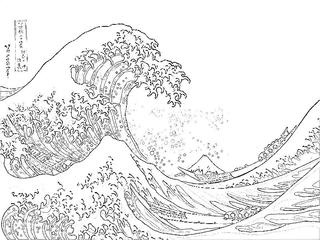 まずは、イラストということで、材料にされやすい、富嶽三十六景「神奈川沖浪裏」 。