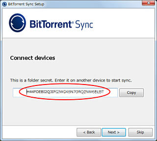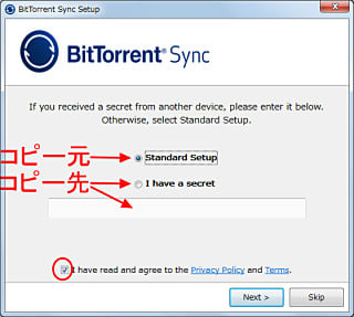 後ほど出てくる「folder secret」というコードを、コピー先に教えます。