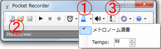 ①鼻歌録音するときは、「メトロノーム」をクリックして、