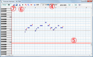 (上部にある小節番号のところをクリックすると、再生開始位置を指定できます。)