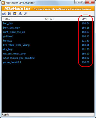 まず、使う曲をまとめて「BPM Analyzer」にドラッグ&ドロップして、