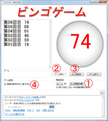 ビンゴ用紙を配布したら、②「ゲーム開始」。