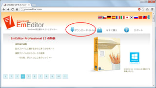 「EmEditor」サイトの、「ダウンロード」ボタンからファイルを入手。