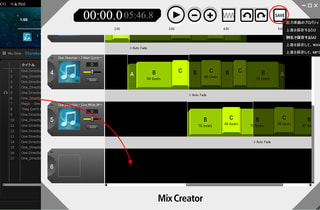 Mix Creatorウィンドウが、元のMIXTRAXウィンドウに重なって表示されたら、
