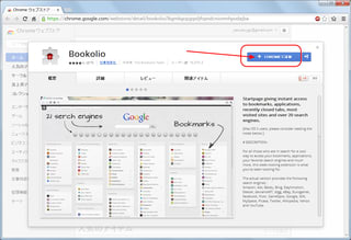 「Bookolio」拡張機能ページを開いて、「+CHROMEに追加」をクリック。