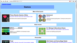 パソコン 懐かしいゲームの一ひねり Draknekさんというゲームプログラマの、ゲーム集。 ブロック崩しなど、懐かしい系のゲームを一ひねりしたような。 発想が、おもしろい。 「ちょっと見」のつもりで覗いたのに、 けっこうハマっちゃうものもあります。 「Draknek's Do... 2013.07.19 パソコン