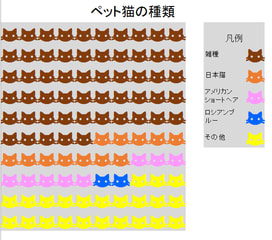 100人グラフ(2) 教材(Excel) X Facebook LINE コピー 2013.08.09 「全体を100個のイラストで表し、 各要素の比率を表示するグラフ」を、作ってみます。 前回は、要素ごとのイラストを用意して、グラフにしてみました。 今回は、「1つのイラストを、要素ごとに色分け」してみます。 残念ながら、エクセルには「図の色を変える」という機能がありません。 ですから、グラフ機能も使えません。 そこで、Efonという絵フォントを利用し、 条件付き書式でグラフ化をしてみます。 テキストのダウンロードは、こちら。 test ad