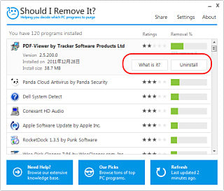 ソフト名をクリックすると、「What is it ?」「Uninstall」の2つのボタンが出ます。