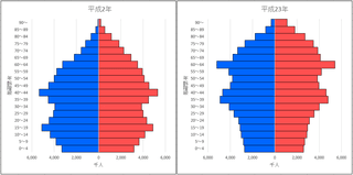 エクセルで、人口ピラミッドのようなグラフを、作ってみました。