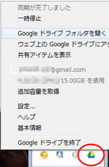 タスクトレイ・アイコンを右クリック→「Googleドライブフォルダを開く」で、