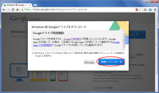 入手したファイルを実行して、「Googleドライブ」アプリケーションをインストール。