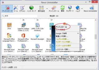 削除したいソフトを右クリック→「アンインストール」。
