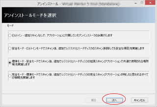 今回は、「完全モード」を選んで、「次へ」。