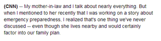 emergency preparedness, I realized that’s one thing we’ve never discussed