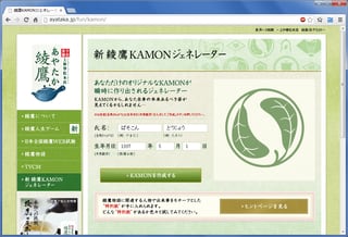 名前(ひらがな)と、生年月日を入力して、「KAMONを作成する」。