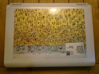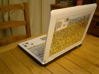 (4)同じように、デザインシートを、パソコンの天板に貼っていきます。